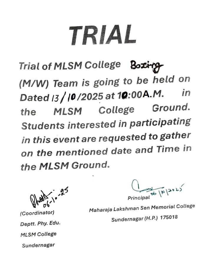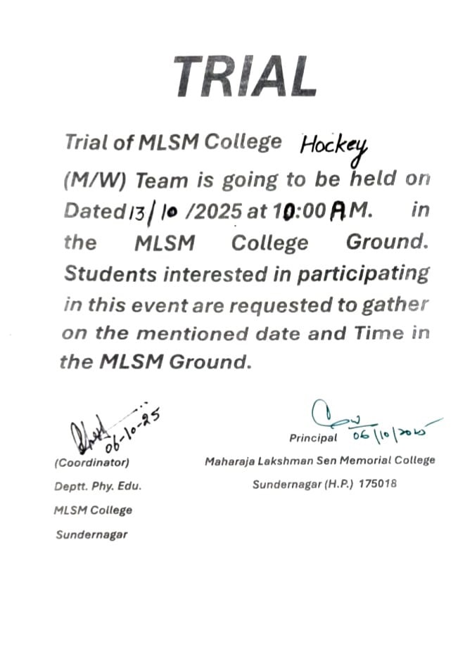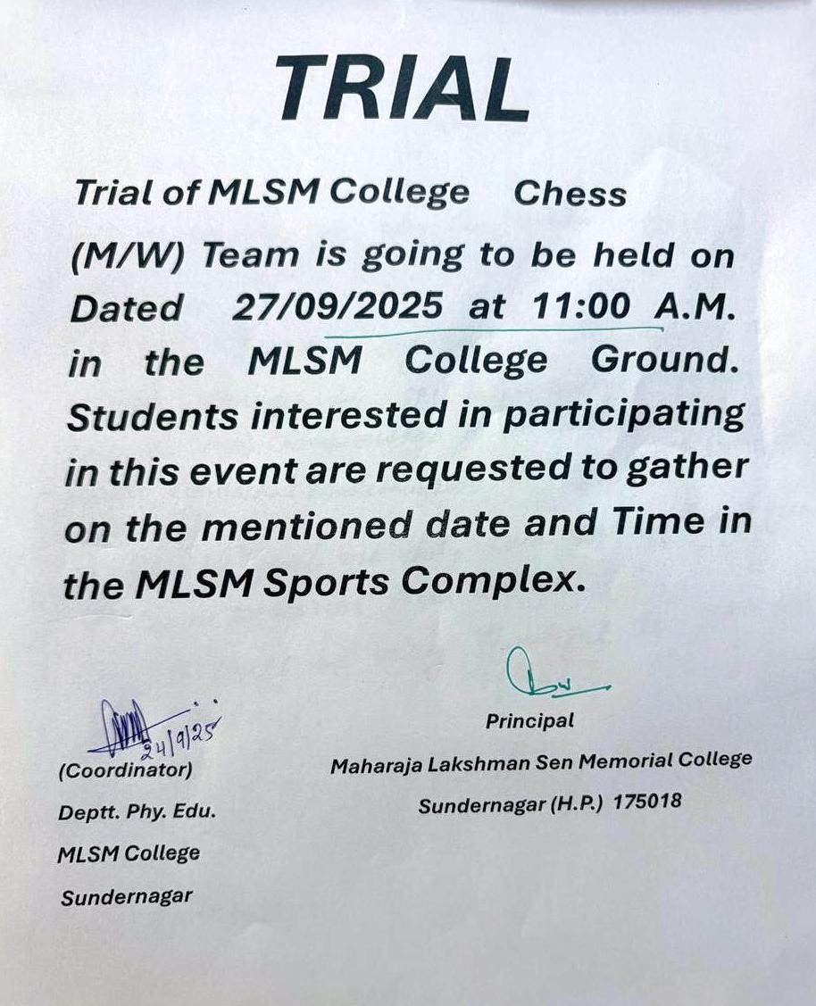 This is to inform all students that a Kabaddi match for both men's and women's sections will be held on August 14, 2025, in celebration of Lakshman Jayanti.